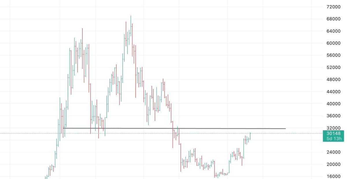 Valor da Criptomoeda desde o Início do ano 2023 cresceu cerca de 80% desde os 16.000$ até aos 30.000$ 🚀 (Abril 2023)